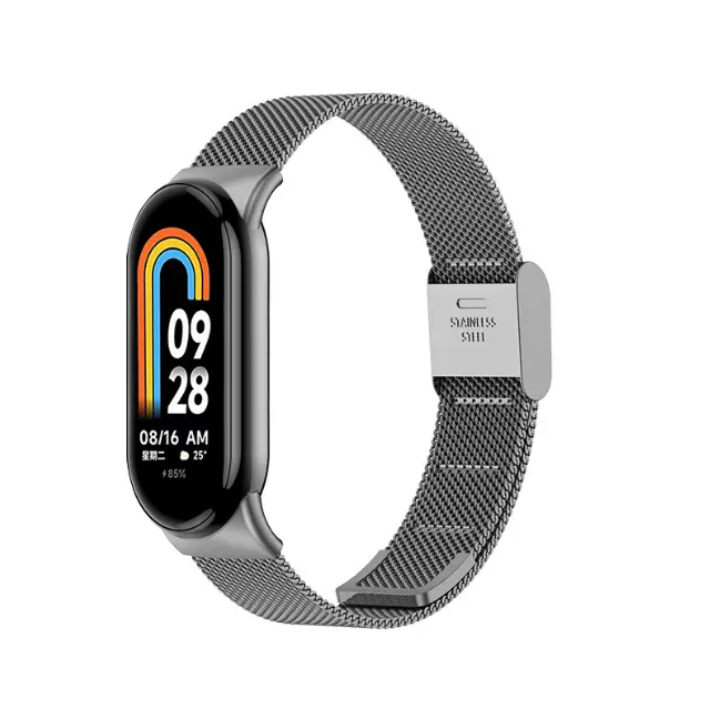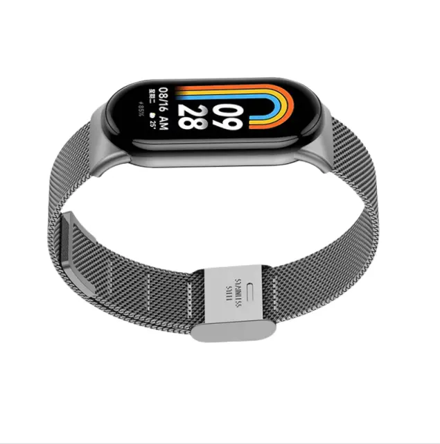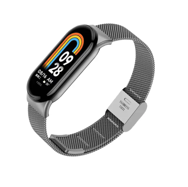 Kovinska zasnova: Izboljšajte svojo Xiaomi Mi Band 8/9 s tem elegantnim kovinskim paščkom za uro. Njegova gladka površina zagotavlja udobno prileganje na zapestju.