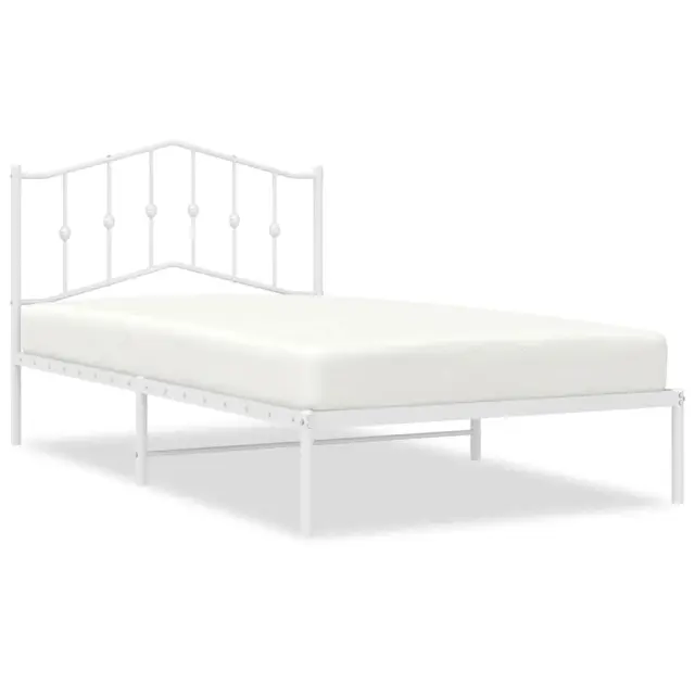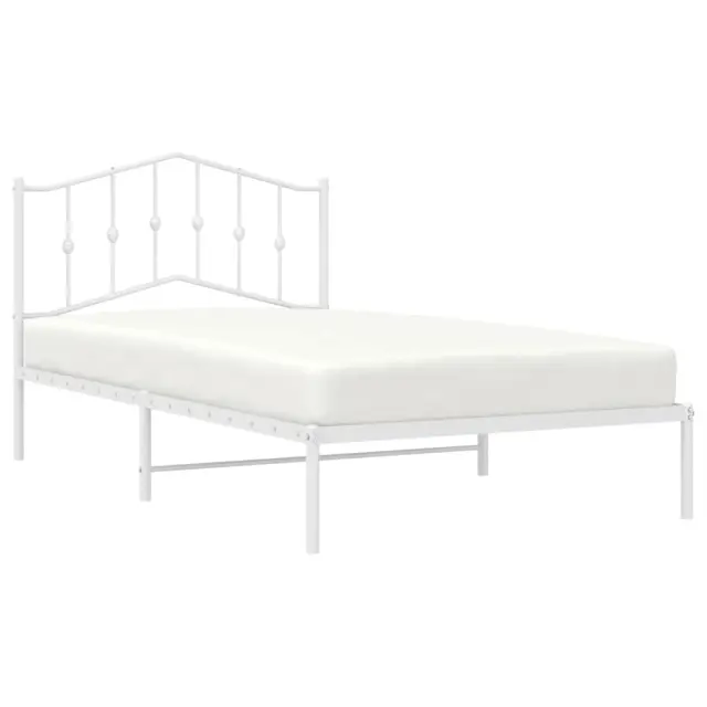 Kovinski Postelja za odrasle - Posteljni Okvir z vzglavjem bel 100x200 cm