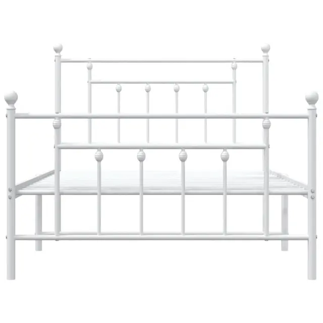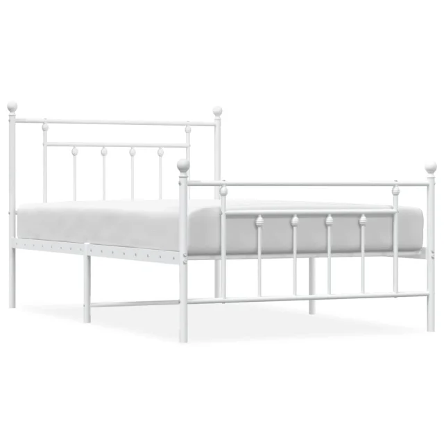 Kovinski Postelja za odrasle - Posteljni Okvir z vzglavjem in vznožjem bel 100x200 cm