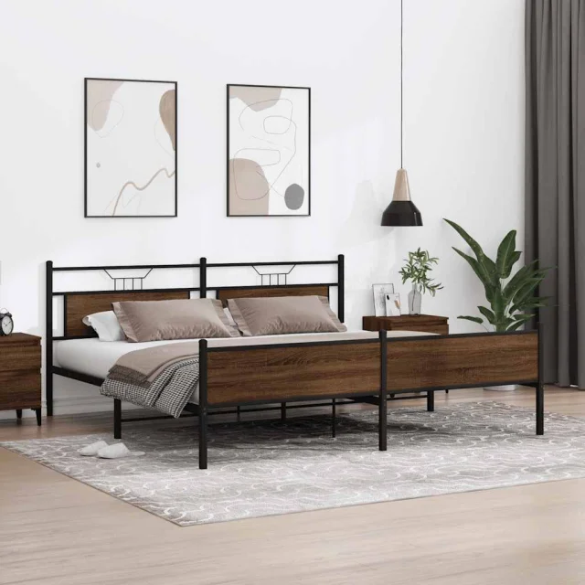 Kovinski Posteljni Okvir - Dvoposteljna postelja brez vzmetnice rjavi hrast 200x200 cm