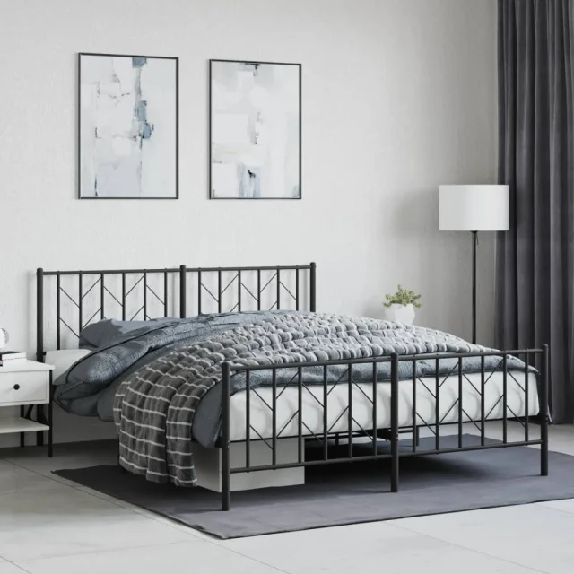 Kovinski Posteljni Okvir - Dvoposteljna postelja brez vzmetnice s podnožjem 160x200 cm