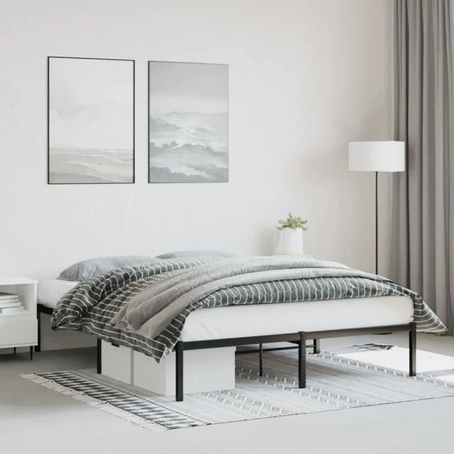 Kovinski Posteljni Okvir - Dvoposteljna postelja črn 160x200 cm