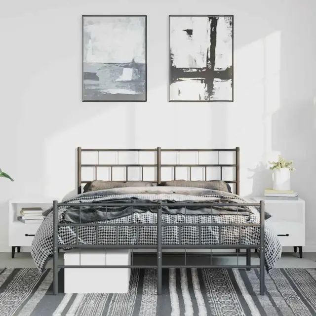 Kovinski Posteljni Okvir - Dvoposteljna postelja z vzglavjem in vznožjem črn 150x200 cm