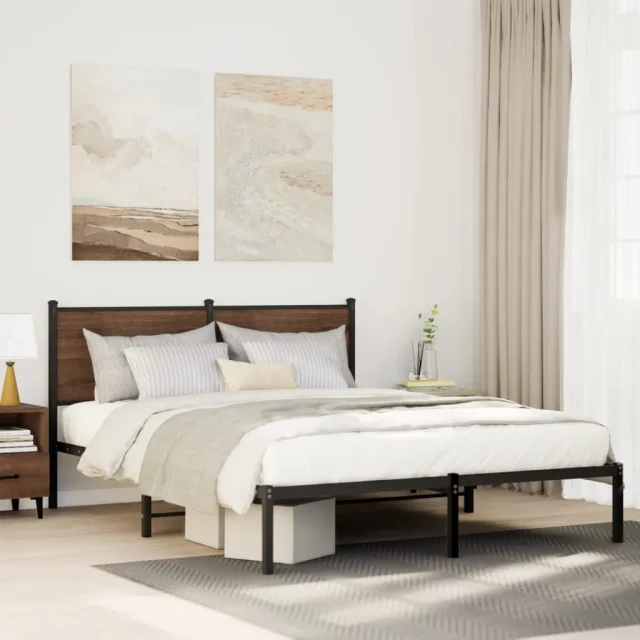 Kovinski Posteljni okvir - Dvoposteljna postelja - Zakonska postelja brez vzmetnice dimljen hrast 140x190cm