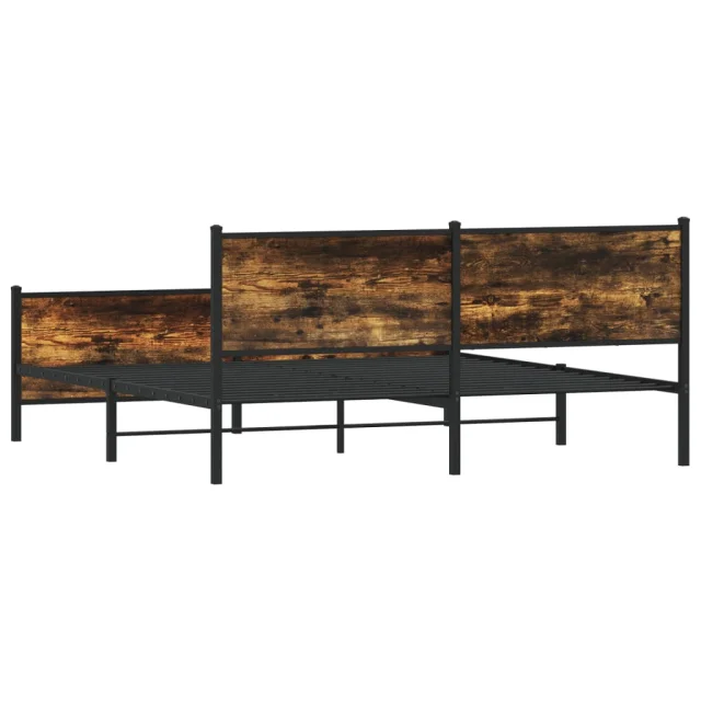Kovinski Posteljni okvir - Dvoposteljna postelja - Zakonska postelja brez vzmetnice dimljen hrast 183x213cm