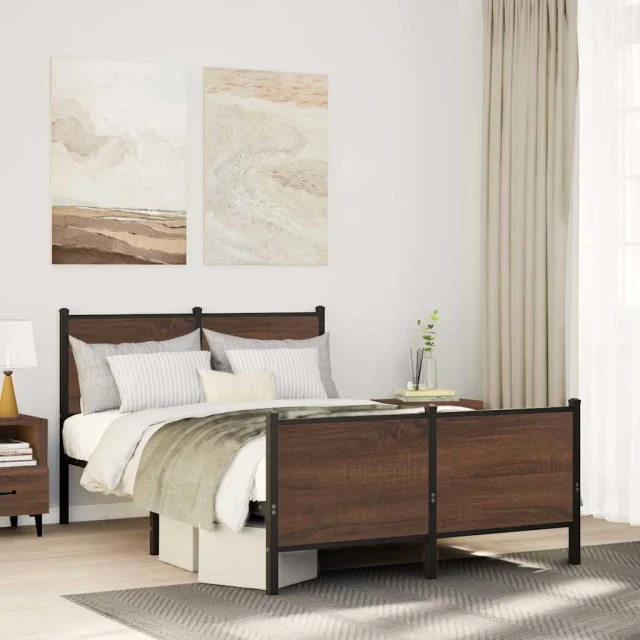 Kovinski Posteljni okvir - Dvoposteljna postelja - Zakonska postelja brez vzmetnice rjavi hrast 120x200 cm