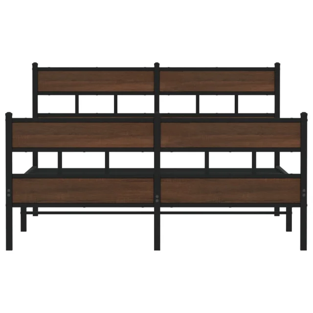 Kovinski Posteljni okvir - Dvoposteljna postelja - Zakonska postelja brez vzmetnice rjavi hrast 150x200 cm