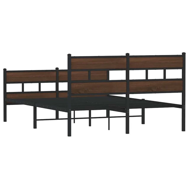 Kovinski Posteljni okvir - Dvoposteljna postelja - Zakonska postelja brez vzmetnice rjavi hrast 160x200 cm