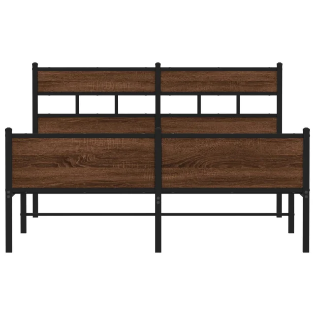 Kovinski Posteljni okvir - Dvoposteljna postelja - Zakonska postelja brez vzmetnice rjavi hrast 160x200 cm
