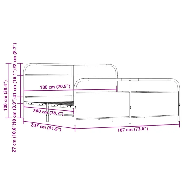 Kovinski Posteljni okvir - Dvoposteljna postelja - Zakonska postelja brez vzmetnice rjavi hrast 180x200 cm