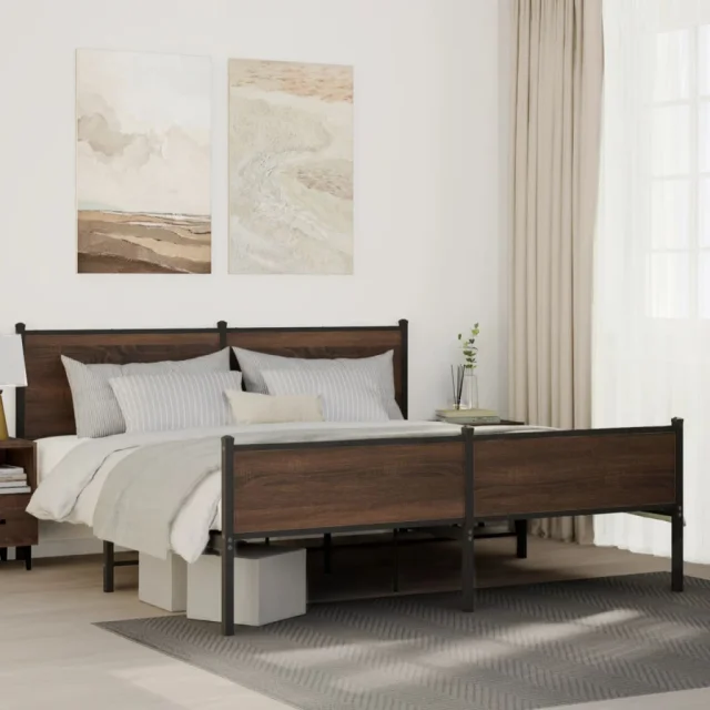 Kovinski Posteljni okvir - Dvoposteljna postelja - Zakonska postelja brez vzmetnice rjavi hrast 180x200 cm