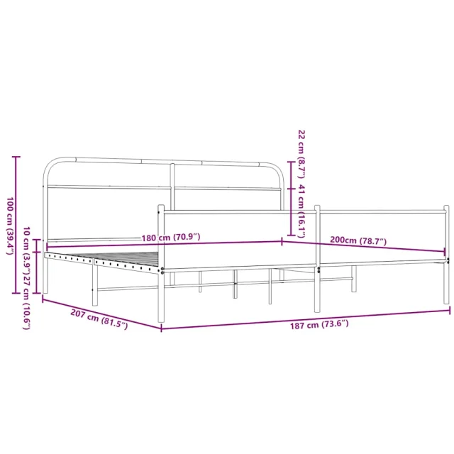 Kovinski Posteljni okvir - Dvoposteljna postelja - Zakonska postelja brez vzmetnice rjavi hrast 180x200 cm