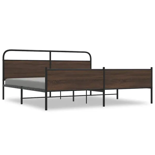Kovinski Posteljni okvir - Dvoposteljna postelja - Zakonska postelja brez vzmetnice rjavi hrast 183x213 cm
