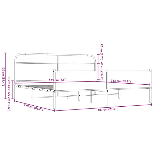 • Velikost primerne vzmetnice: 183 x 213 cm (Š x D) (vzmetnica ni priložena)
