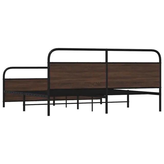 Kovinski Posteljni okvir - Dvoposteljna postelja - Zakonska postelja brez vzmetnice rjavi hrast 193x203 cm