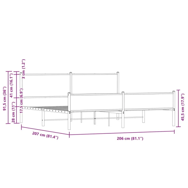 Kovinski Posteljni okvir - Dvoposteljna postelja - Zakonska postelja brez vzmetnice sonoma hrast 200x200 cm