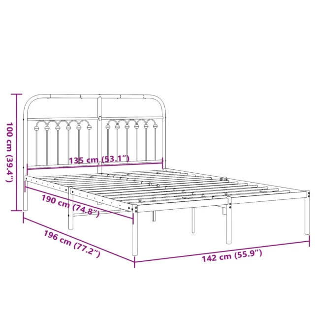 Kovinski Posteljni okvir - Dvoposteljna postelja - Zakonska postelja z vzglavjem bel 135x190 cm