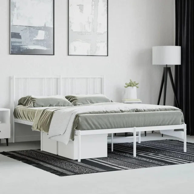 Kovinski Posteljni okvir - Dvoposteljna postelja - Zakonska postelja z vzglavjem bel 140x200 cm