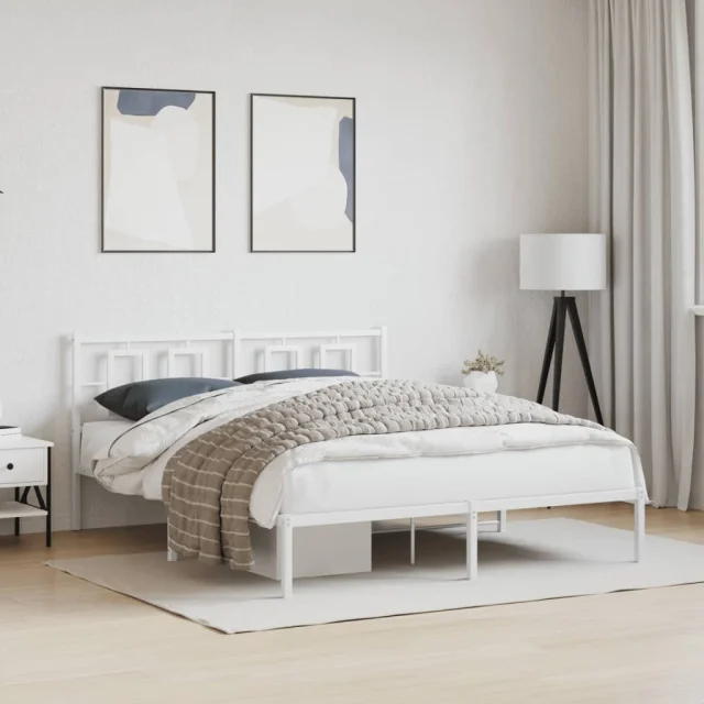 Kovinski Posteljni okvir - Dvoposteljna postelja - Zakonska postelja z vzglavjem bel 150x200 cm