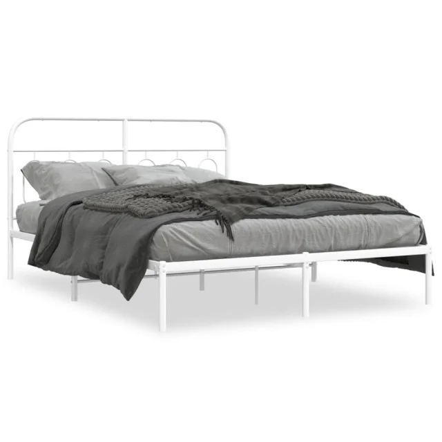 Kovinski Posteljni okvir - Dvoposteljna postelja - Zakonska postelja z vzglavjem bel 150x200 cm