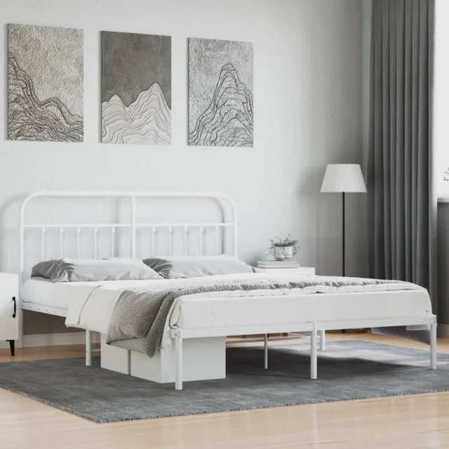 Kovinski Posteljni okvir - Dvoposteljna postelja - Zakonska postelja z vzglavjem bel 160x200 cm