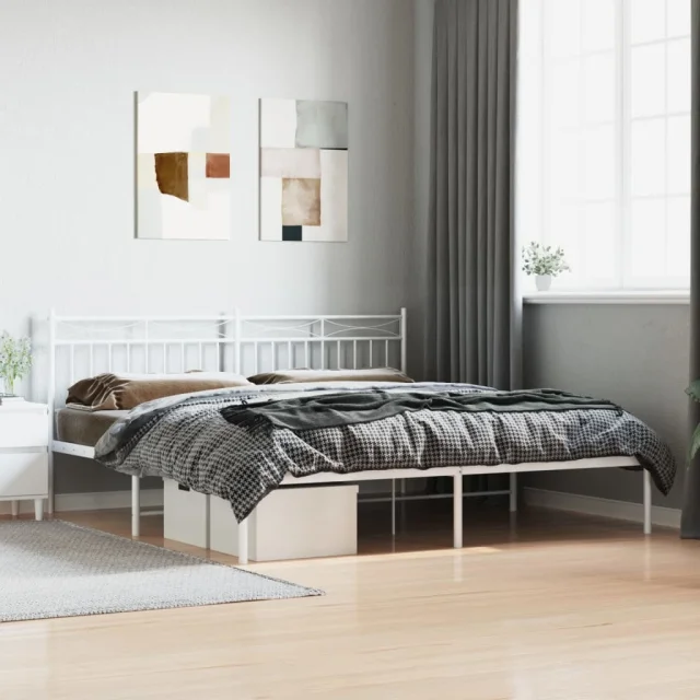 Kovinski Posteljni okvir - Dvoposteljna postelja - Zakonska postelja z vzglavjem bel 183x213 cm