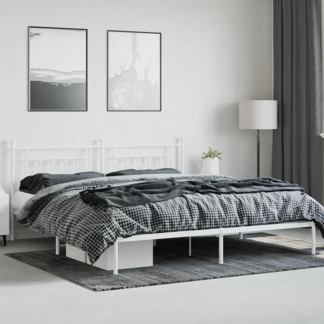 Kovinski Posteljni okvir - Dvoposteljna postelja - Zakonska postelja z vzglavjem bel 193x203 cm