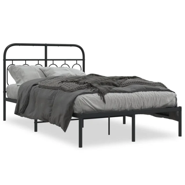 Kovinski Posteljni okvir - Dvoposteljna postelja - Zakonska postelja z vzglavjem črn 120x190 cm