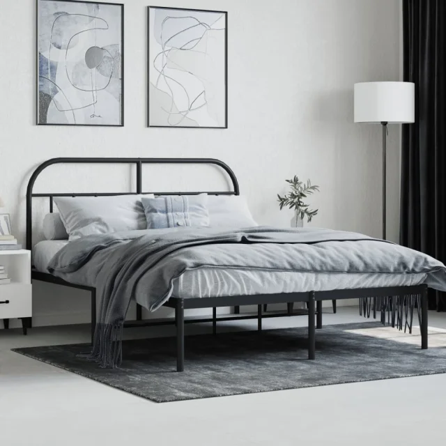 Kovinski Posteljni okvir - Dvoposteljna postelja - Zakonska postelja z vzglavjem črn 140x190 cm
