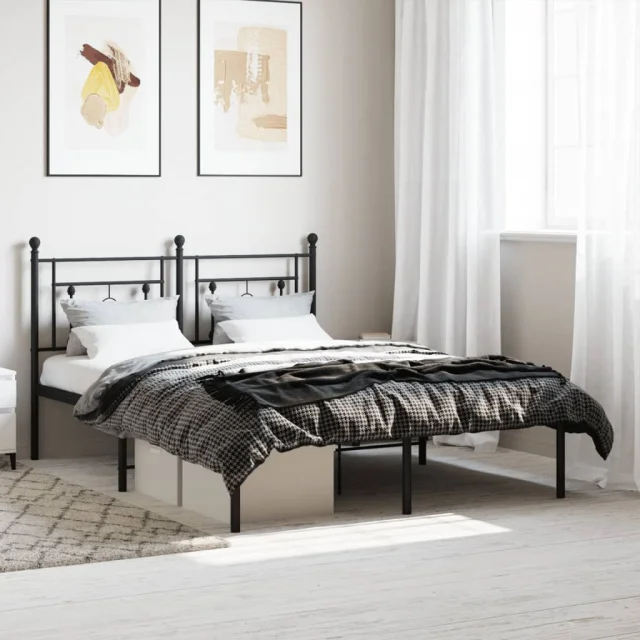 Kovinski Posteljni okvir - Dvoposteljna postelja - Zakonska postelja z vzglavjem črn 140x190 cm