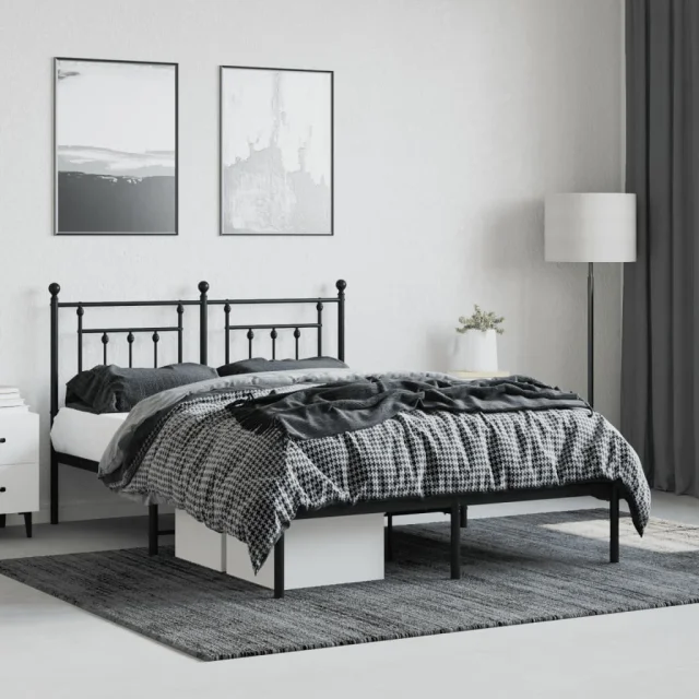 Kovinski Posteljni okvir - Dvoposteljna postelja - Zakonska postelja z vzglavjem črn 140x190 cm