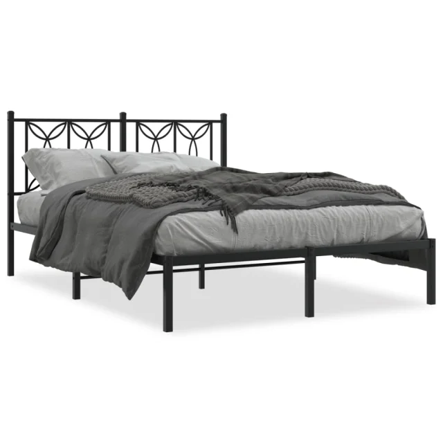 Kovinski Posteljni okvir - Dvoposteljna postelja - Zakonska postelja z vzglavjem črn 140x190 cm