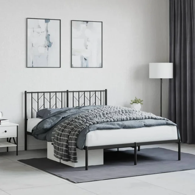 Kovinski Posteljni okvir - Dvoposteljna postelja - Zakonska postelja z vzglavjem črn 140x190 cm