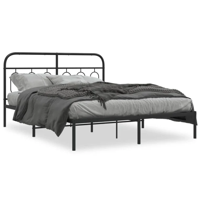 Kovinski Posteljni okvir - Dvoposteljna postelja - Zakonska postelja z vzglavjem črn 140x200 cm