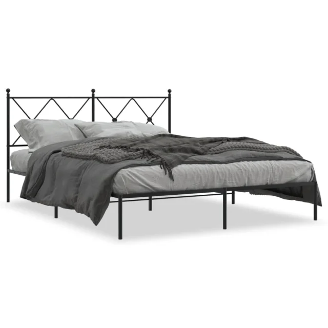 Kovinski Posteljni okvir - Dvoposteljna postelja - Zakonska postelja z vzglavjem črn 160x200 cm