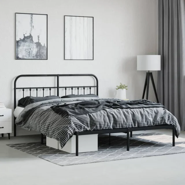 Kovinski Posteljni okvir - Dvoposteljna postelja - Zakonska postelja z vzglavjem črn 183x213 cm