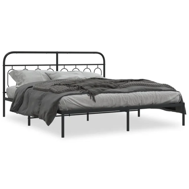 Kovinski Posteljni okvir - Dvoposteljna postelja - Zakonska postelja z vzglavjem črn 183x213 cm