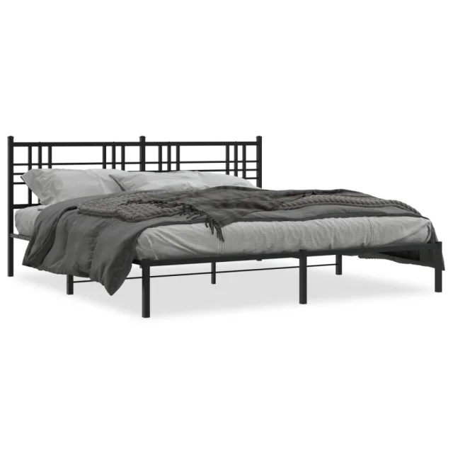 Kovinski Posteljni okvir - Dvoposteljna postelja - Zakonska postelja z vzglavjem črn 193x203 cm