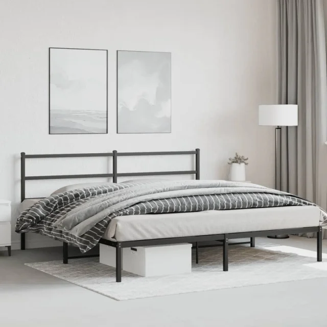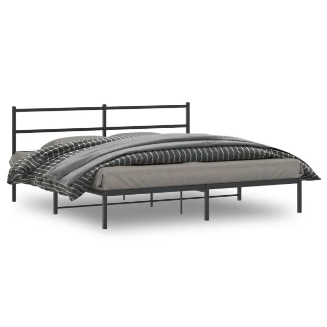 Kovinski Posteljni okvir - Dvoposteljna postelja - Zakonska postelja z vzglavjem črn 193x203 cm