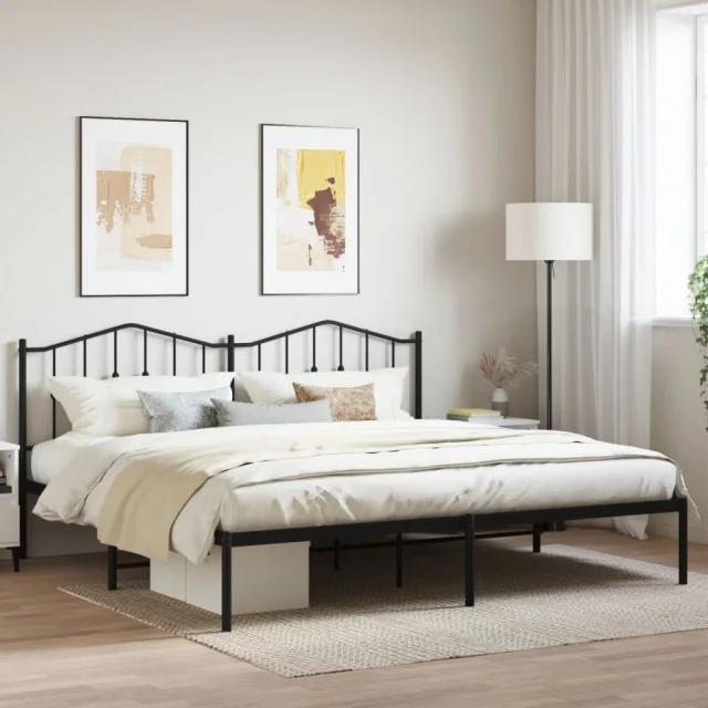 Kovinski Posteljni okvir - Dvoposteljna postelja - Zakonska postelja z vzglavjem črn 193x203 cm