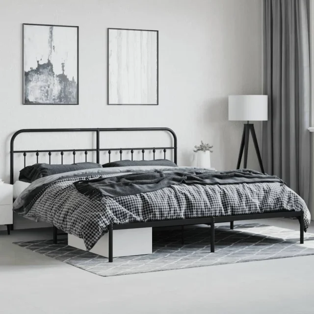 Kovinski Posteljni okvir - Dvoposteljna postelja - Zakonska postelja z vzglavjem črn 193x203 cm