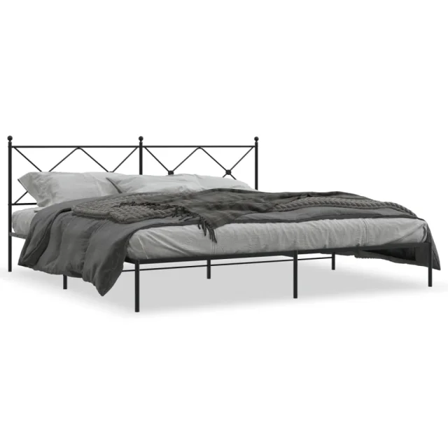 Kovinski Posteljni okvir - Dvoposteljna postelja - Zakonska postelja z vzglavjem črn 200x200 cm