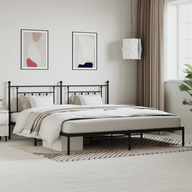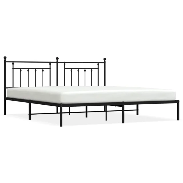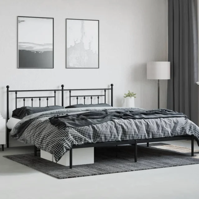 Kovinski Posteljni okvir - Dvoposteljna postelja - Zakonska postelja z vzglavjem črn 200x200 cm