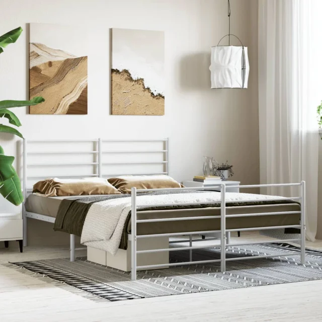 Kovinski Posteljni okvir - Dvoposteljna postelja - Zakonska postelja z vzglavjem in vznožjem bel 120x190 cm
