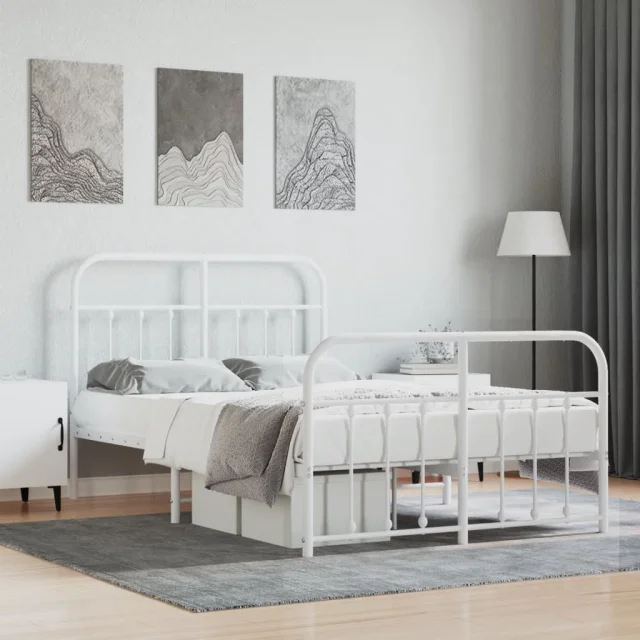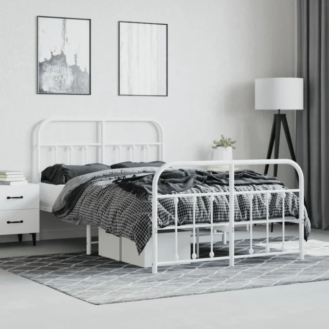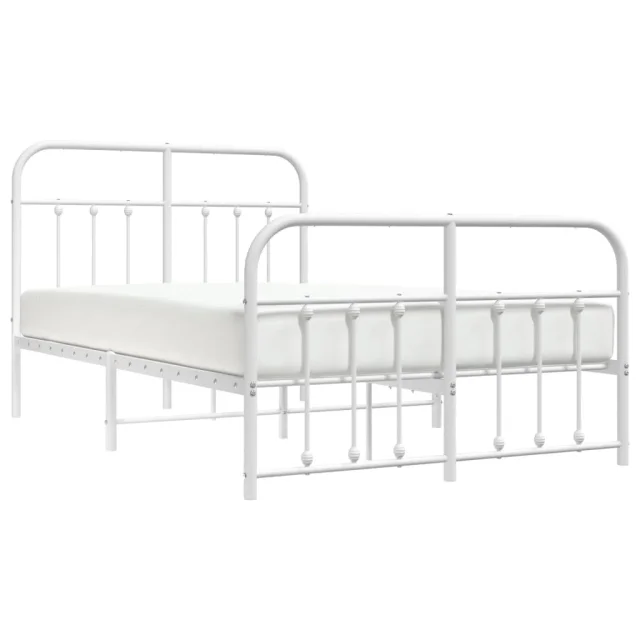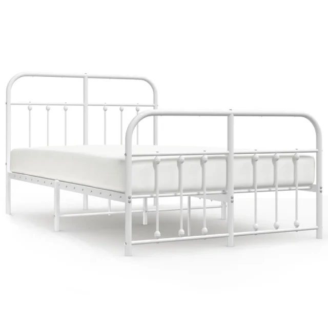 Kovinski Posteljni okvir - Dvoposteljna postelja - Zakonska postelja z vzglavjem in vznožjem bel 120x190 cm