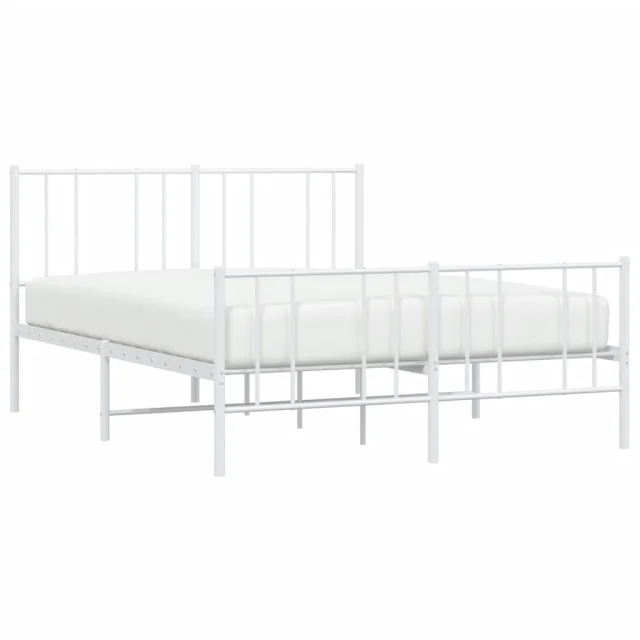 Kovinski Posteljni okvir - Dvoposteljna postelja - Zakonska postelja z vzglavjem in vznožjem bel 120x200 cm