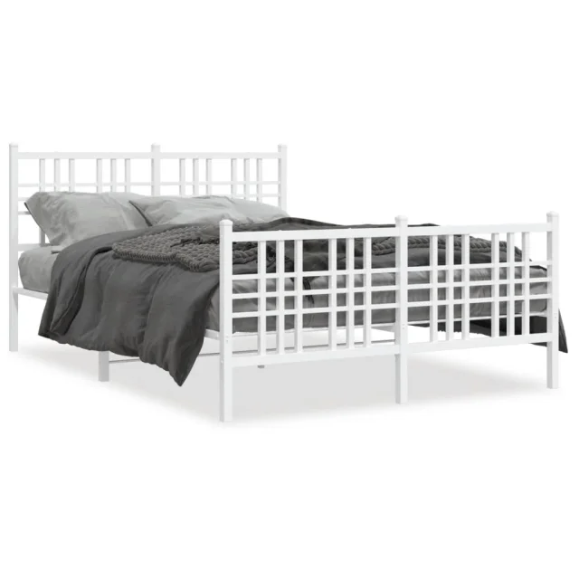 Kovinski Posteljni okvir - Dvoposteljna postelja - Zakonska postelja z vzglavjem in vznožjem bel 120x200 cm
