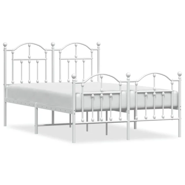 Kovinski Posteljni okvir - Dvoposteljna postelja - Zakonska postelja z vzglavjem in vznožjem bel 120x200 cm