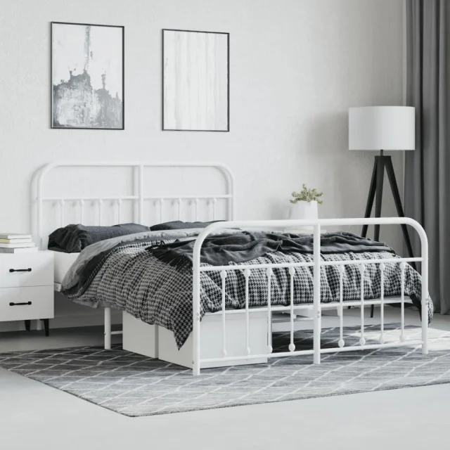 Kovinski Posteljni okvir - Dvoposteljna postelja - Zakonska postelja z vzglavjem in vznožjem bel 135x190 cm
