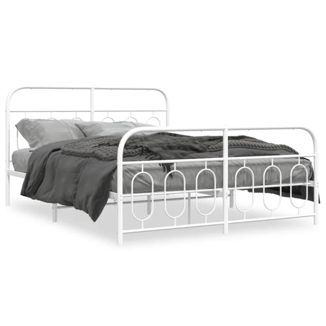 Kovinski Posteljni okvir - Dvoposteljna postelja - Zakonska postelja z vzglavjem in vznožjem bel 135x190 cm